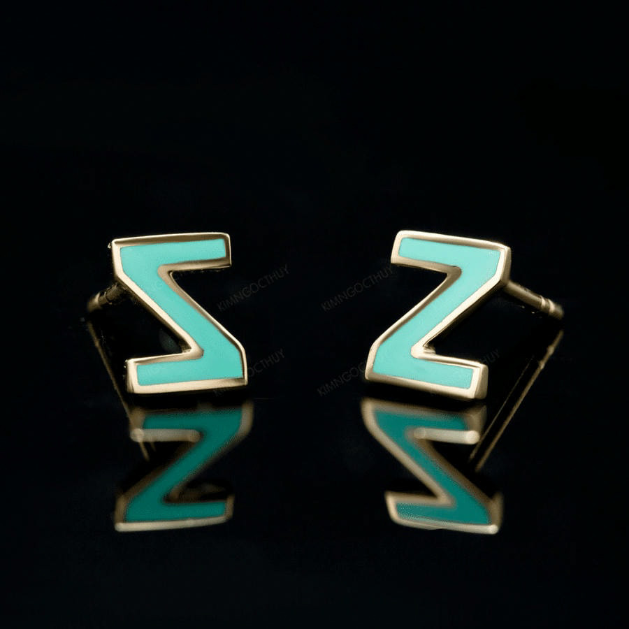 Bông Tai “Sea LA Vie” Chữ Z – BZ – “Sea La Vie!” – Phóng khoáng & trẻ trung: Với thiết kế bông tai là những ký tự được phủ sứ xanh của đại dương.