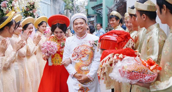 Ngoài ra, tất cả những người trong đội bưng quả bên ngang tuổi nhau, luôn thể hiện sự vui tươi và rạng rỡ thì mới có thể mang đến hạnh phúc cũng như may mắn cho cô dâu, chú rể.